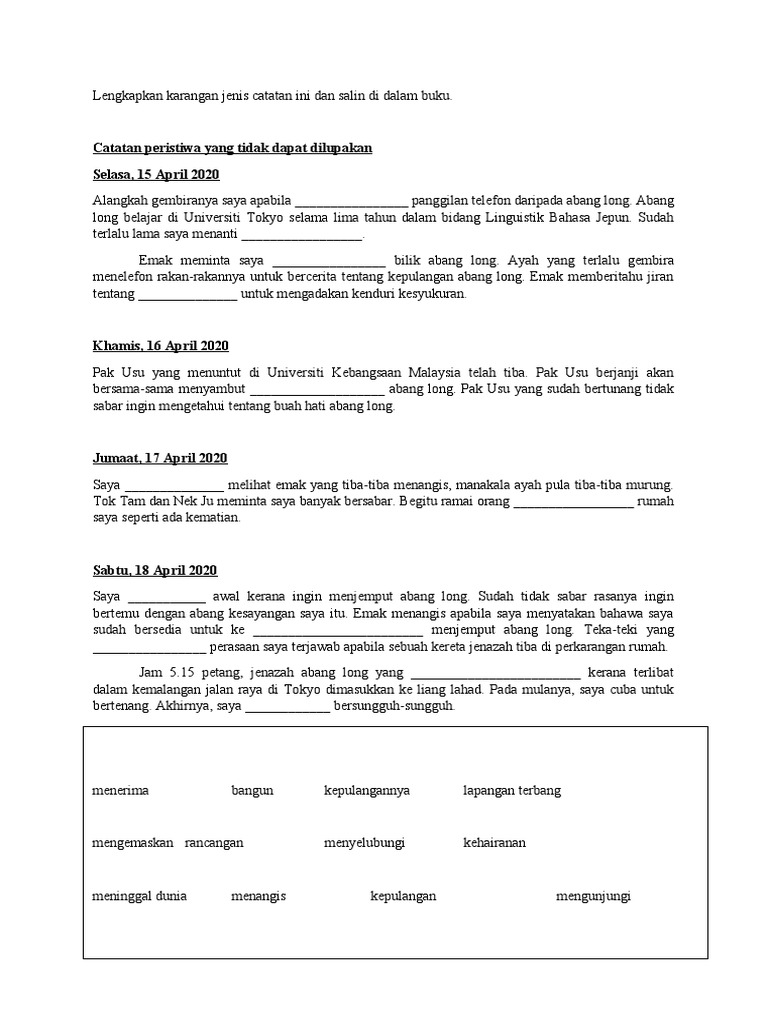 5 karangan dalam bahasa inggris terlengkap beserta artinya 6 contoh mendeskripsikan seseorang dalam bahasa inggris di keluarga 17 contoh teks. Buruk dan baiknya iklan Bahasa Inggeris di televisyen. Tulis sebuah cerita berdasarkan peribahasa berikut Genggam bara biar sampai jadi arang.