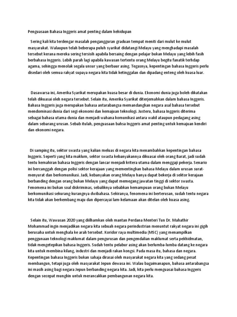 Penguasaan Bahasa Inggeris Amat Penting Dalam Kehidupan Pdf