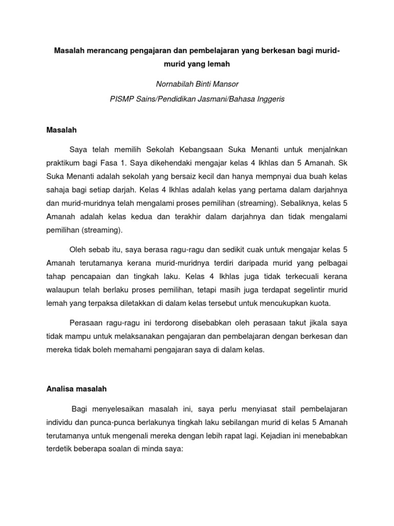 Masalah Merancang Pengajaran Dan Pembelajaran Yang Berkesan Bagi Murid Pdf