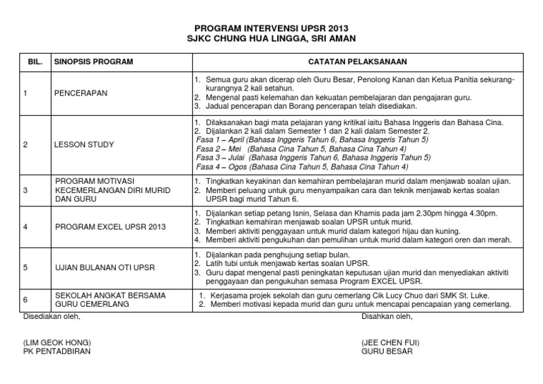 Program Intervensi Upsr 2013 Chl Terkini Pdf