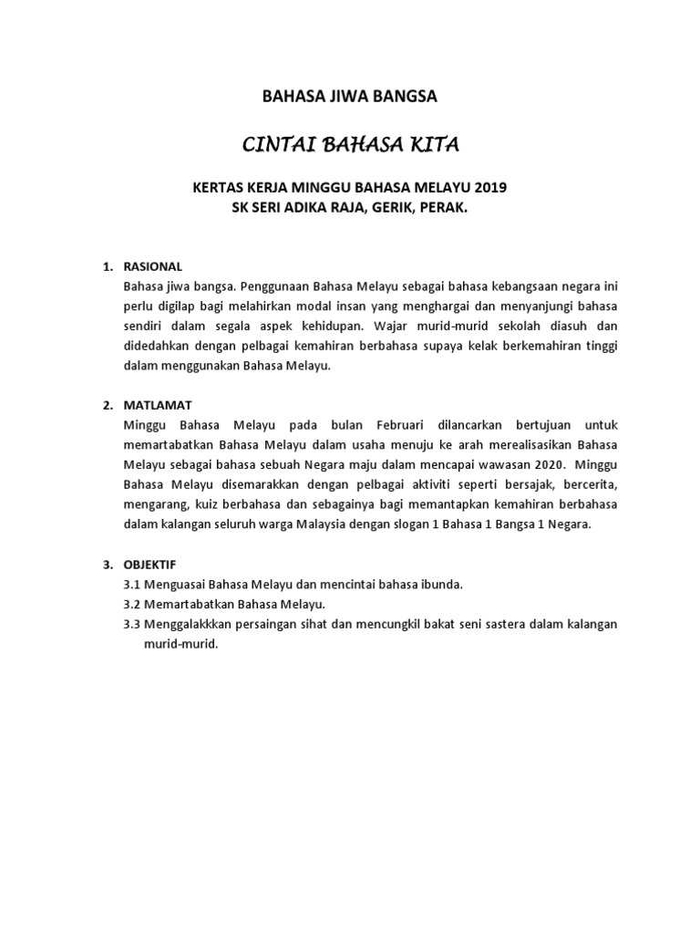 Fasal 152 Perlembagaan Persektutuan Tanah Melayu 1957 dan Perlembagaan Malaysia 1963 disebutkan bahawa bahasa kebangsaan adalah bahasa Melayu dan akan kekal seperti itu seperti yang diperuntukkan oleh Parlimen dengan bahawa a tidak. Download SEMINAR TEKNIK MENJAWAB TAHUN ENAM 2019 PDF for free. Telusuri indeks buku teks paling komprehensif di dunia.