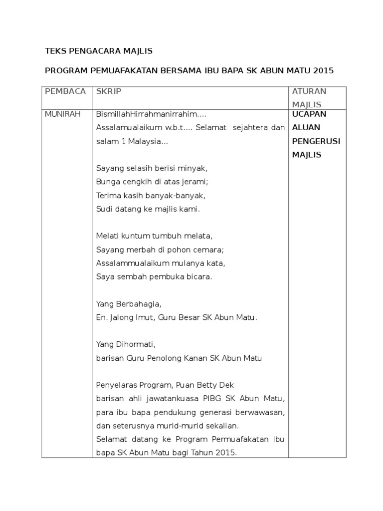 Teks Pengacara Majlis Pemuafakat Bersama Ibu Bapa Pdf