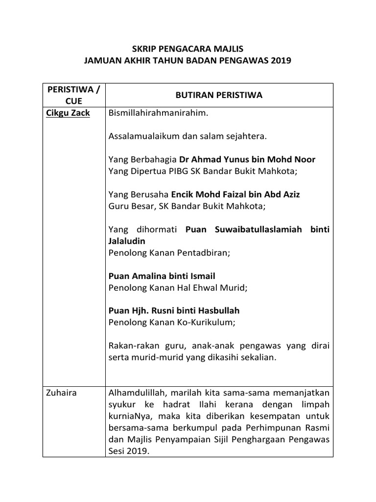 Mereka ini berperanan sebagai pengendali dalam sebarang majlis yang di anjurkan. Rasmi Contoh Skrip Pengacara Majlis - Teks Pengacara Majlis Docx Document. Bukan itu sahaja 4 April yang lepas.