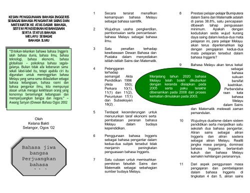 Kesan Penggunaan Bahasa Inggeris Brosur Format Pdf