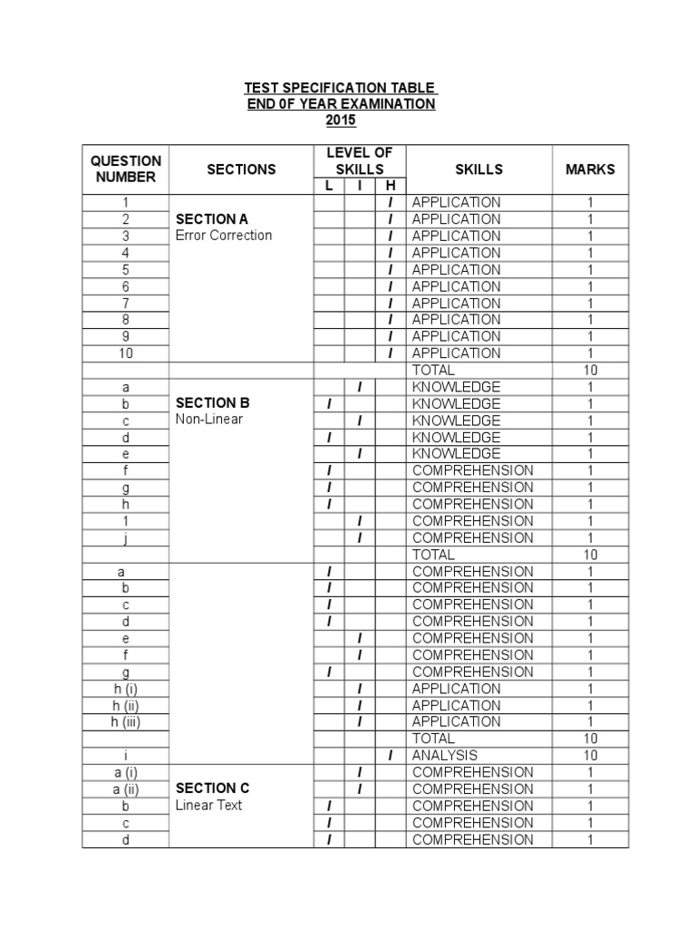 Jsu Bahasa Inggeris Pemahaman Ujian Mac Docx Jadual Spesifikasi Ujian Jsu Ujian Mac Tahun 4 2019 Bahasa Inggeris Pemahaman 013 Section Questio N No Course Hero