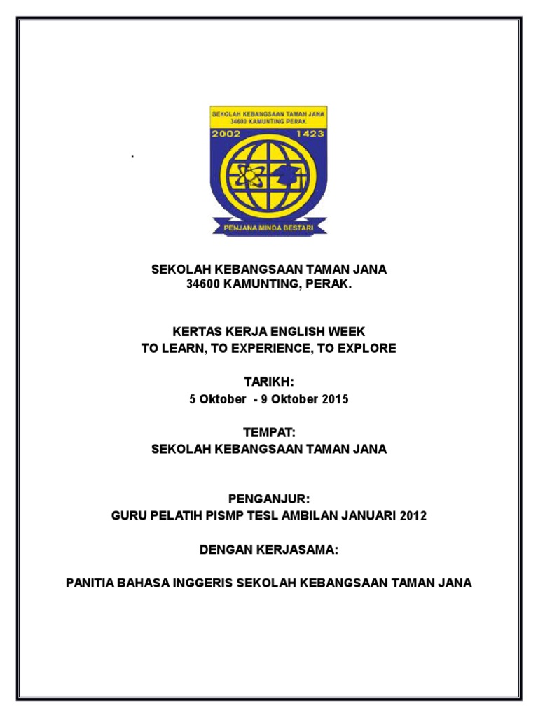 Bahasa inggeris bahasa yang paling kerap dituturkan di serata dunia sehingga dirujukkan sebagai bahasa dunia. Sebagai contohnya kemahiran berbahasa Inggeris amat penting apabila seseorang individu ditugaskan di luar Negara atau membawa misi negara di luar negara. PUAN NOR FADILA MOHD AMIN NO 4 KAMPUNG SUNGAI KLUANG Nama Penyelia CATATAN.
